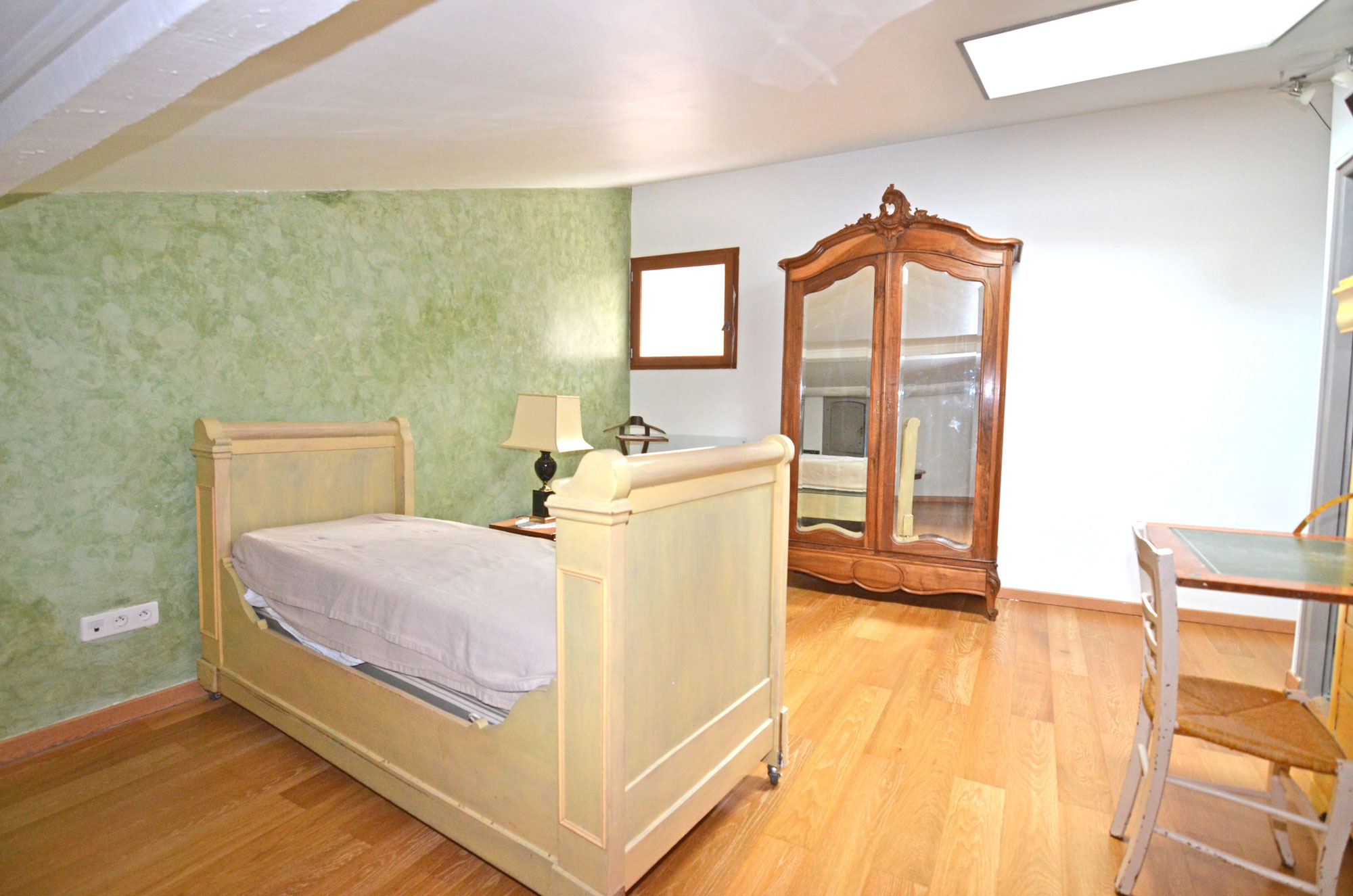 Situated in the center of the village, one enters this stone village house through a small entrance into a ground-floor salon that opens onto a fitted and equipped kitchen with access to a lovely small courtyard. Off the kitchen are a bathroom/shower room (wheelchair accessible), a bedroom, and a utility room. There is a communicating door from the bedroom to the garage. A spiral wooden staircase leads up to the next floor into a good-sized lounge with a closed fireplace ( insert). The lounge gives access to a balcony overlooking a small plaza. There are two bedrooms with en-suite shower rooms on this level, as well as storage space. A small attic space provides additional storage.